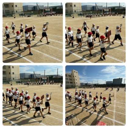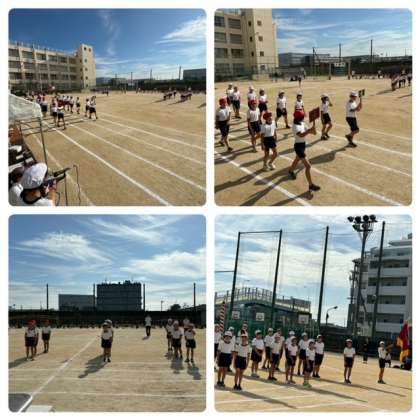 どの学年も堂々と行進できました。青空の下、全員整列です。