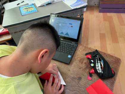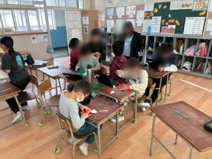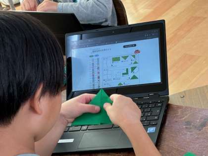 4年生が、折り紙を使ってクリスマス飾りを作っていました。ちょっと気が早い?最近は、折り紙もwebで調べるのですね。
