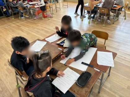 1.2年生が先週出かけた町探検で調べたことをポスターにしていました。どんな作品になるのかな?