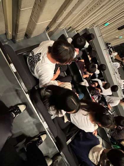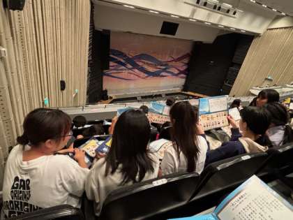 今日は6年生が「劇団四季の心の劇場-ガンバの大冒険」を観劇に来ました。オリックス劇場に市内の6年生がたくさん来ています。