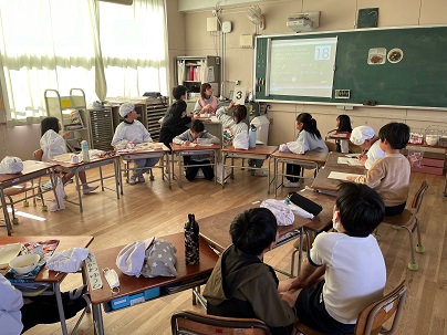 ふれあい給食のときに、給食委員会の児童が給食クイズをしました。