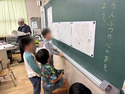 2年生は自分たちで学習を進めます。音読を工夫するためにしっかり本文を読みます。