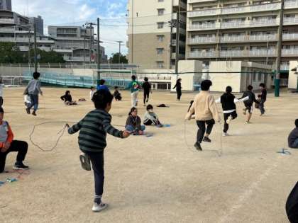 今日のぴょんぴょんタイムでは「かけあしとび」をしました。頑張ってとび続けましょう。