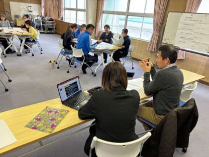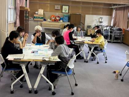 たくさんのすてきな作品ができました。放課後に授業について研究会を開き子どもたちの学習のがんばりを確認し合いました。