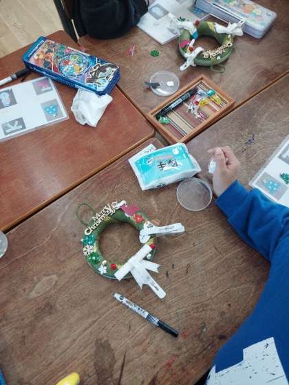 最後に、できあがったクリスマスリースを持って記念撮影!