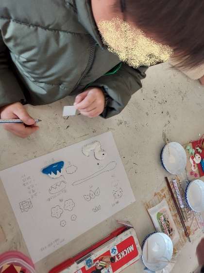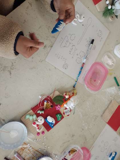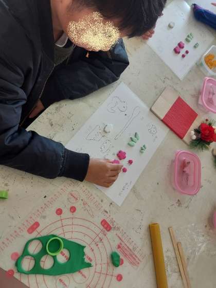 お手本を見ながら、紙粘土でパーツを作っていきます。