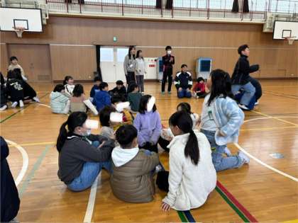 今日は今年最後の集会でした。「猛獣狩りにいこう!」です。最後まで楽しくゲームをしました。