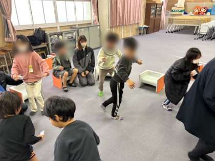 今日は、1.2年生のイングリッシュタイムです。外部の講師を招いて楽しいゲームをしました。クリスマスイングリッシュです。