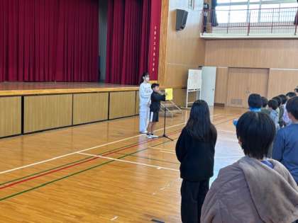 今日は2学期の終業式です。校長先生からさ感謝について、生活指導の先生からは「いかのおすし」について、児童会から赤い羽根の募金のお礼と色々な話がありました。明日から楽しい冬休みを過ごしてください。