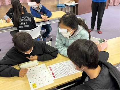 問題文と答えのシートをもらって始まりです。ルールに沿って進めていけば見つかるのでみんな真剣です。