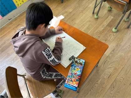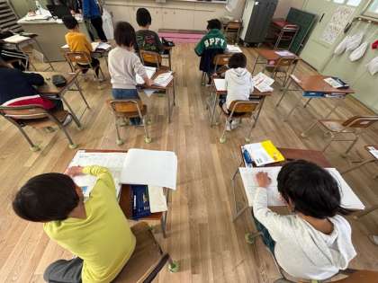「八日はようか」日本語は同じ漢字でも読み方が変わるんです。1.2年生の子どもたちはたくさん覚えていました。