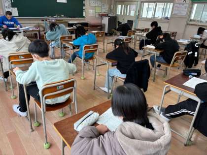 6年生がテストを受けていました。卒業式までに後何回受けるのかな?
