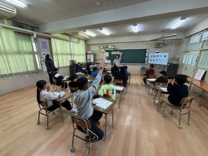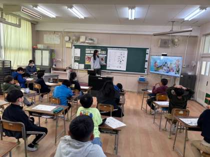 4年生の食育の学習です。かみかみセブンが登場する絵本を読んで、噛むことの大切さを学びました。「ひみこのはがいーぜ」が合言葉