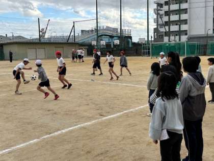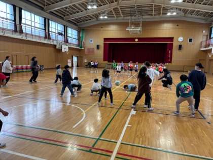 屋外運動クラブでは、サッカーを見学しました。屋内運動クラブでは、ドッジボールに参加しました。来年はどのクラブに入るのかな?