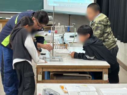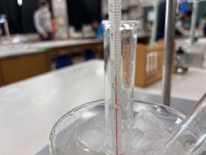 4年生が理科室で水の温度を下げる実験をしていました。水の三態の学習ですね。なんと零下6度まで下がった班がありました。
