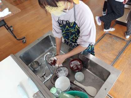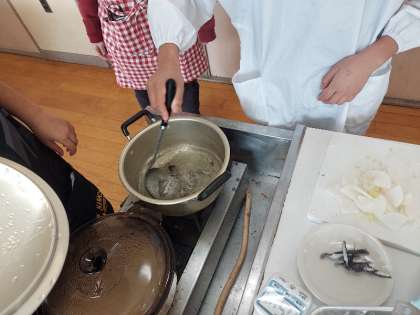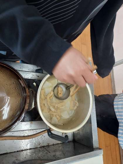 包丁で具材を切ったり、煮干しでだしをとったり、お味噌をとかしたり