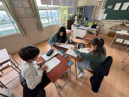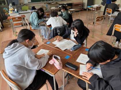 6年生の子どもたちは、自分のペースで学習を進めます。机のカードの色が変われば先生や仲間からアドバイスをもらいます。