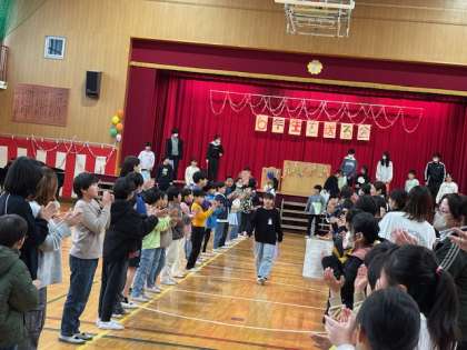 いよいよ退場の時間です。みんなの花道に見送られて6年生は会場を出ます。卒業まで後9日