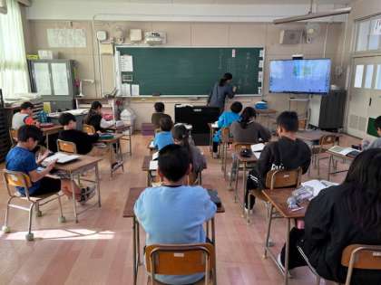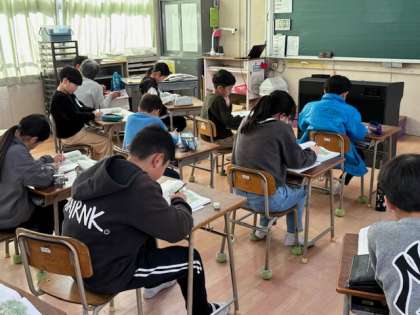 4年生の国語の学習です。美しい文学作品です。先生の範読を聞きながら線を引いていました。
