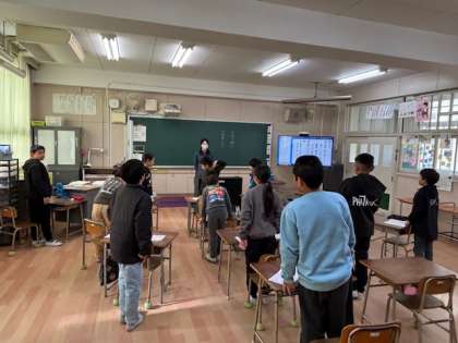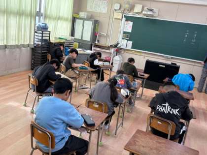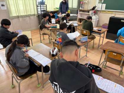 4年生は、今朝の早くから漢字テストの勉強です。1時間目の挨拶が終わるとすぐにテスト開始です。