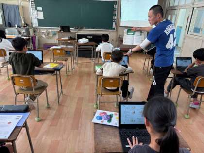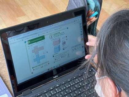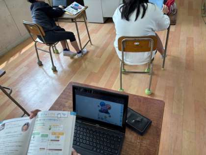 5年生が算数のデジタル教科書の使い方を調べていました。とにかく触ってみようと、いろんな発見をしていました。