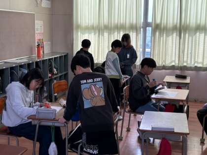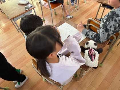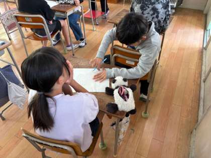 6年生は縦割り班のカードを作ります。班長はデザインを考えて、わかりやすいカードになるように工夫していました。