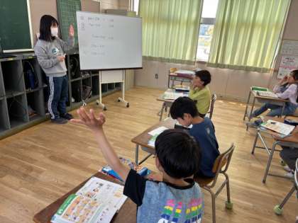 1.2年生は算数の時間に複式学級で学習していました。1年生は「たりるかな?」2年生は「2桁の足し算」です。