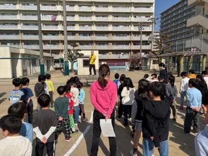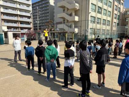 > 今日は、今年度最初の児童朝会がありました。校長先生からは昨日開幕した万博の話がありました。生活指導の先生からは今月の目標について話がありました。