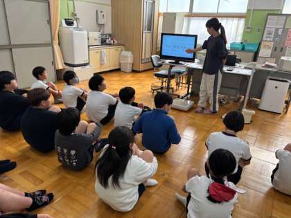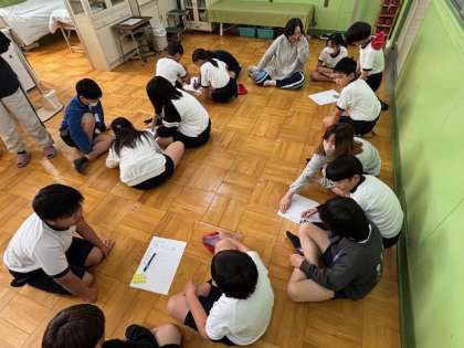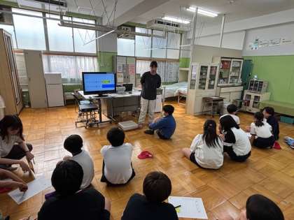 > 今日は発育測定です。今年は「歯の健康」について考えます。6年生は、歯磨き、虫歯に関するクイズで学びました。