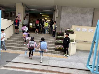 今日から新たなメンバーであいさつ運動が始まりました。代表委員に入った子どもたちはこれから1年間続けます。頑張って!