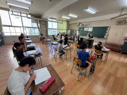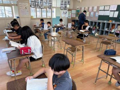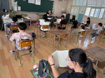 5年生は国語の時間に「おにぎり石の伝説」を音読していました。主人公の心情を音読で工夫します。
