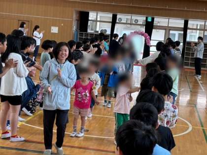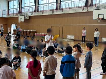 今日は1年生をお迎えする集会でした。1年生の入場をみんなで拍手で迎えました。その後、代表の6年生があいさつをしました。