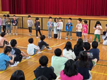 学年の代表の人から順番におめでとうの言葉をもらいました。2年生からは手作りのメダルももらいました。