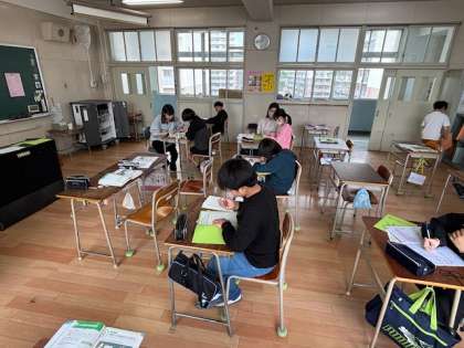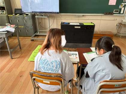 6年生も単元内自由進度学習を進めています。モニターには子ども達の進捗状況が分かるように掲示されていて、取り組みたい内容から学習しています。