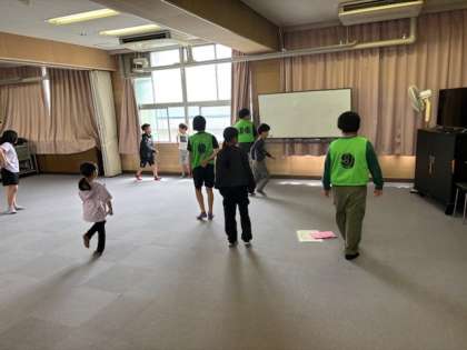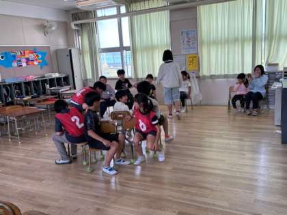 今日はなかよしタイムの日です。室内では、椅子取りゲーム、宝探し、新聞じゃんけんなどをしていました。
