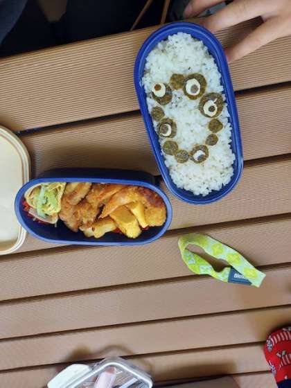 一番の楽しみはなんと言ってもお弁当。お弁当にミャクミャク登場!