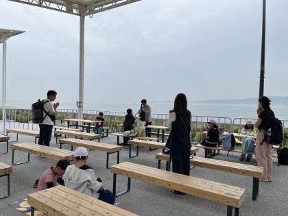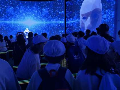 4年生はお昼ご飯の後、未来の都市というパビリオンに入りました。座ってみられるシアター型のパビリオンです。