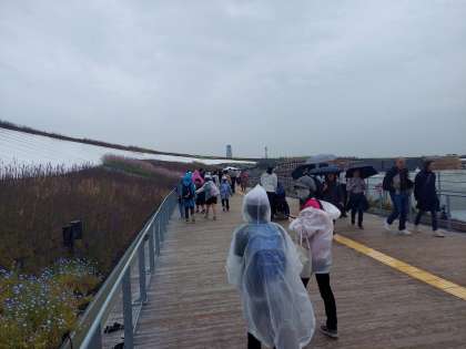 5.6年生大屋根リングに上りました。雨も少し小ぶりです。
