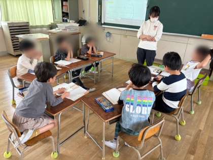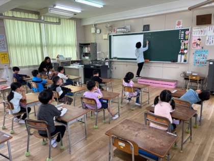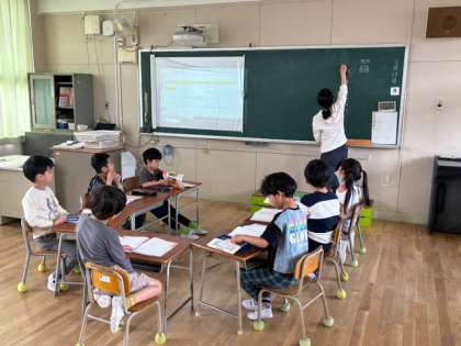 今日は、「いじめ、いのちについて考える日」です。朝会で校長先生のお話を聞き、1.2年生は教室で「いじめ」について考えています。