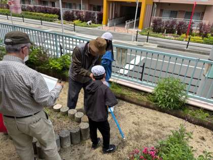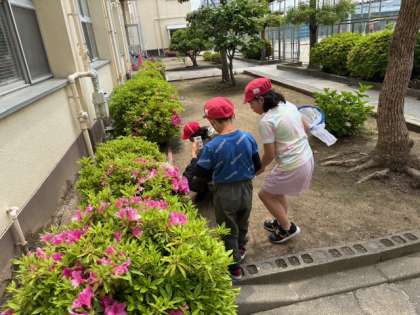 生き物調査隊は、土の上だけでなく、葉っぱの裏、空中、植木鉢の裏などいろんなところで生き物を探しています。