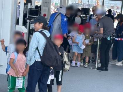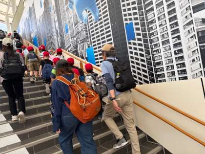 地下鉄は混んでいましたが、無事に夢洲駅に到着しました。QRコードを見せてゲートを入ります。もうワクワクがいっぱいです。