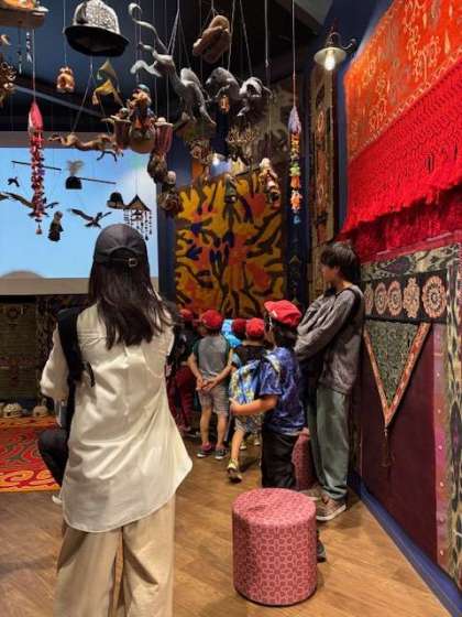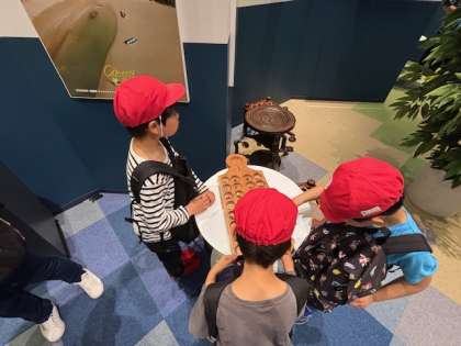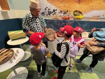 たくさんの国や地域の文化を見ます。ゲームや太鼓を触らせてもらいました。