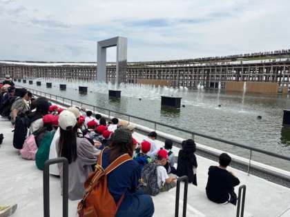 コモンズ館を出て、毎時丁度に行われるウォーターショーを見ています。音楽と噴水がすてきです。