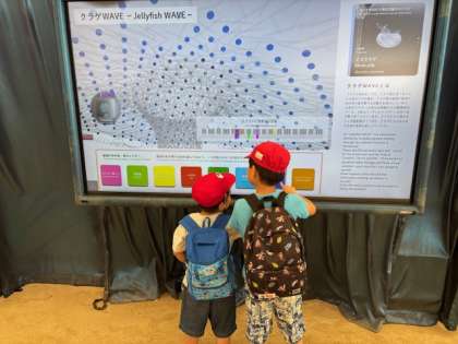 クラゲ館でいろんな遊びをしました。大きなモニターに写して遊ぶのはとても楽しかったそうです。