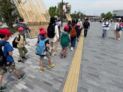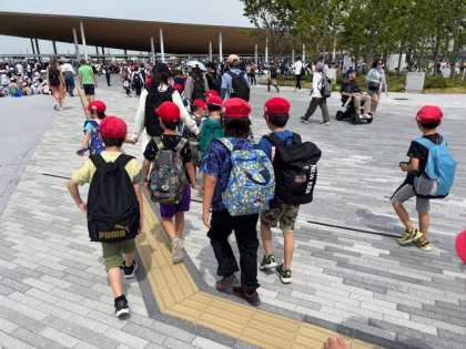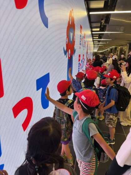 今日は動いているミャクミャクには会えなかったので、夢洲駅のモニターのミャクミャクにバイバイしました。さあ、帰りましょう、