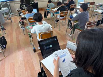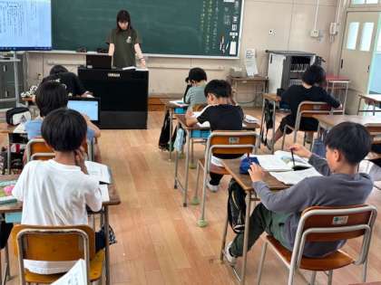 6年生の国語の時間です。「イースター島にはなぜ森林がないのか」説明的文章の意味段落を考えていました。