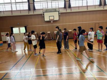 今日はぴょんぴょんタイムの日です。あいにく運動場が使えないので、講堂でしました。どの学年もどんどん上達しています。