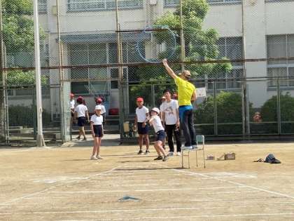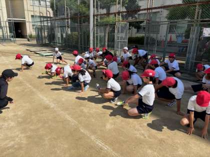 今日から運動場でのテストです。まずは、5.6年生のソフトボール投げです。