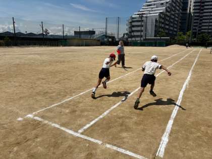 5.6年生の50m走も計測しました。スタートダッシュが決まっています。