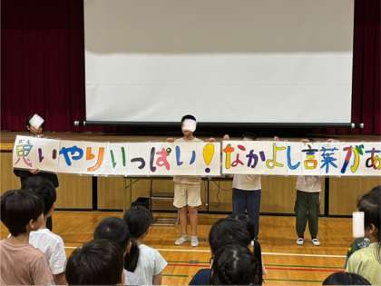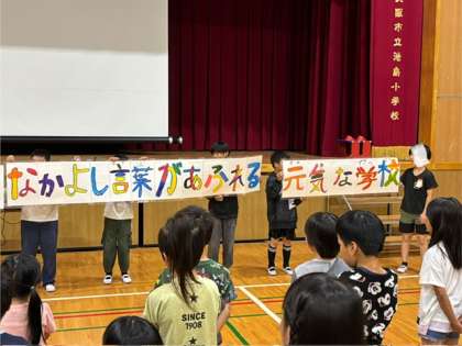 今朝の朝会では、代表委員の自己紹介と決意発表をしました。みんなで協力して「思いやりいっぱい!なかよし言葉があふれる元気な学校」にしましょう。